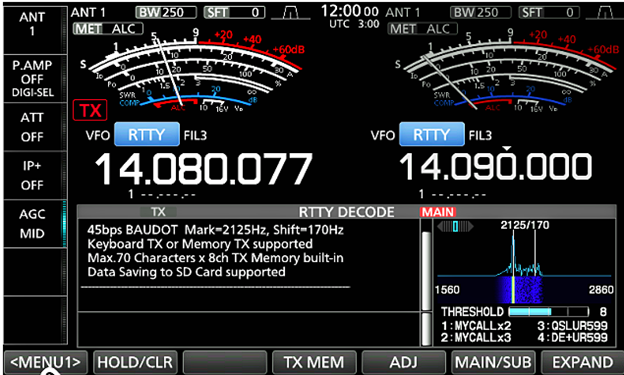 The IC-7610 has built-in RTTY decoders and encoders. Using a USB keyboard and the contents set in the RTTY TX memory, you can do basic RTTY operations without using an external device or software. (Image/Icom)